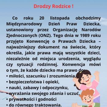 zachęcamy do przeczytania listu o Prawach Dzieci, napisanego przez nauczyciela wychowania przedszkolnego w naszej placówce - dr Iwonę ...