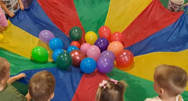 Nasze przedszkole posiada także salę basenową, dzięki której dzieci mogą rozwijać motorykę dużą i wzmacniać ciało poprzez zabawę w kulkach.