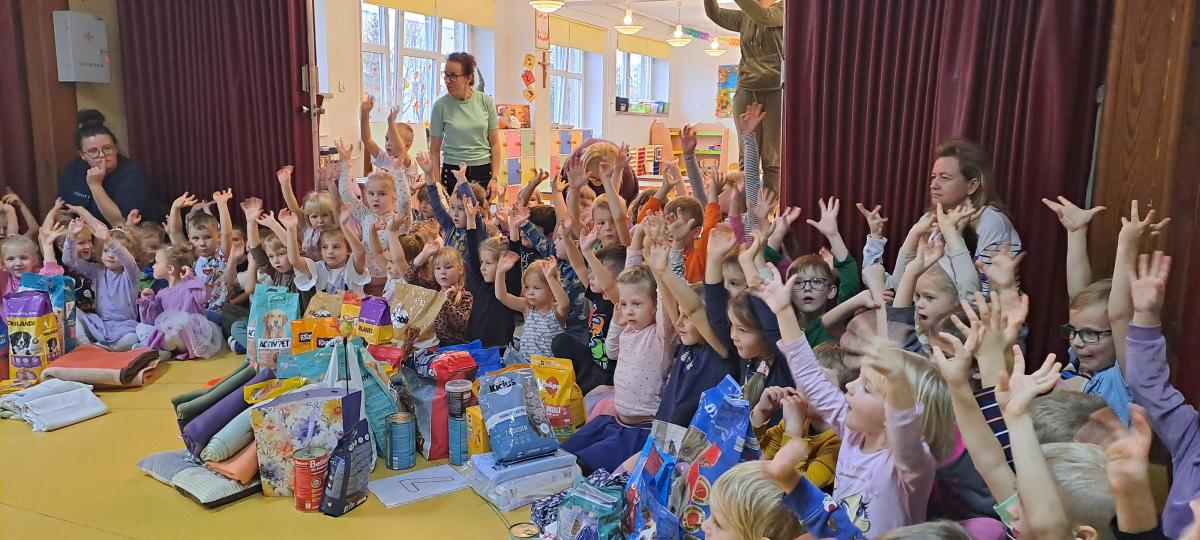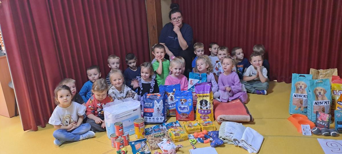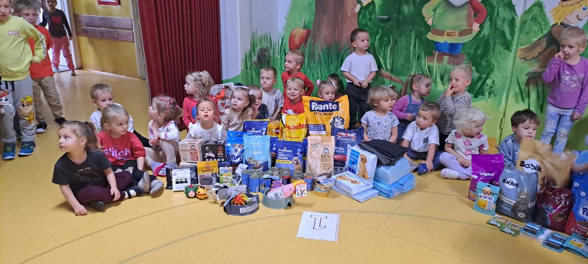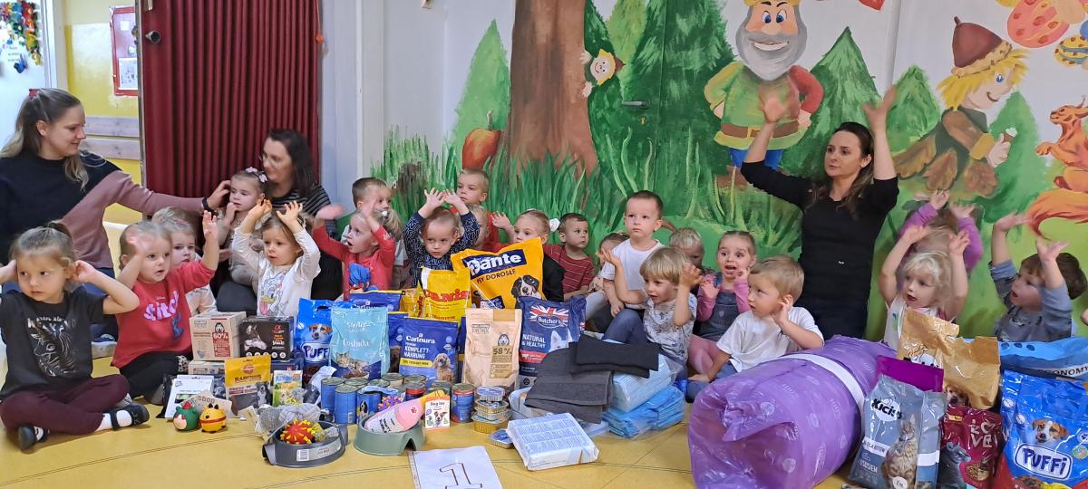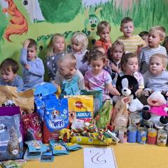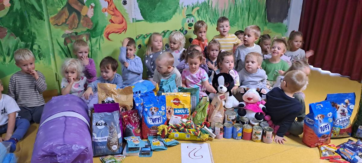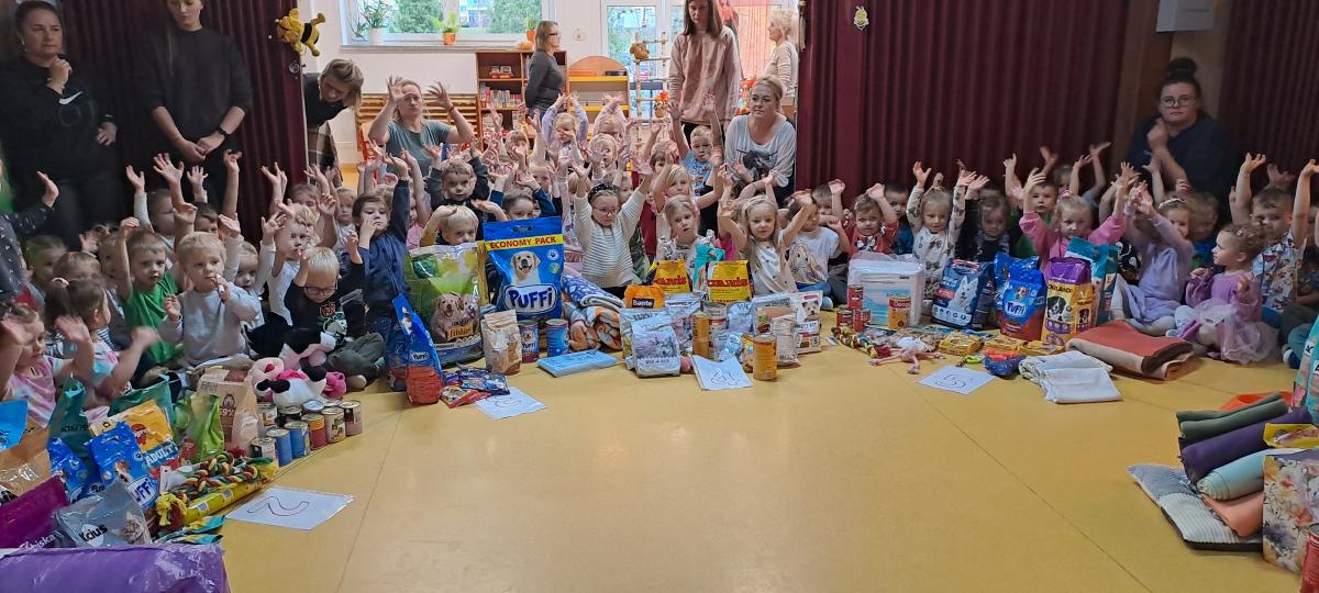 Każda z grup z ogromnym zaangażowaniem przyniosła na salę ruchu zebraną żywność, koce, legowiska, zabawki i inne akcesoria dla podopiecznych ze schroniska w Dyminach. 🐶🐱