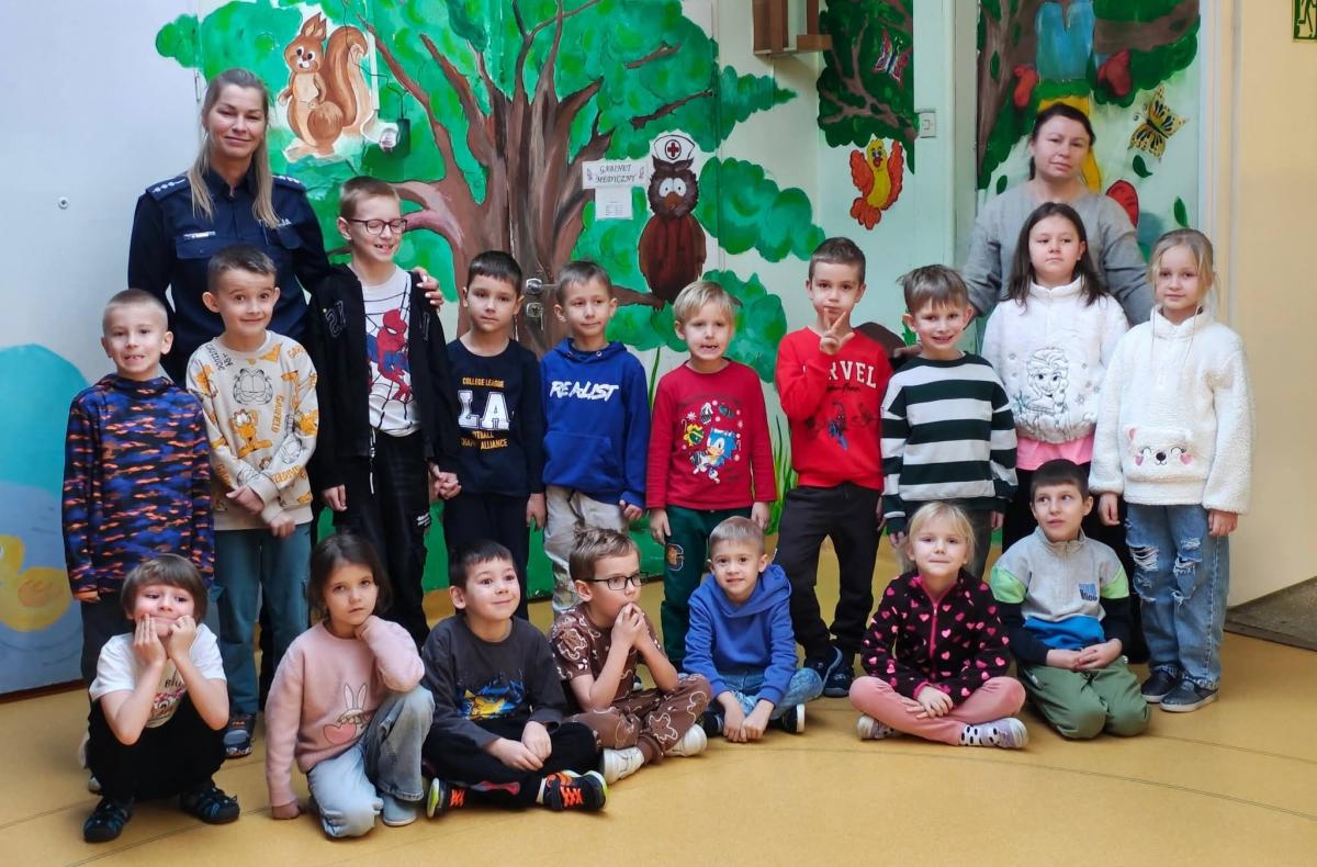 Poruszony został również ważny temat: jak postępować w kontaktach z nieznajomymi oraz jak reagować w sytuacjach, które mogą być niebezpieczne. Nasze przedszkolaki bardzo aktywnie uczestniczyły w rozmowie – zadając pytania i dzieląc się swoimi spostrzeżeniami.