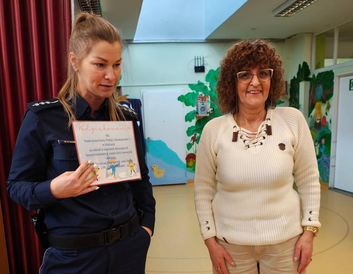 W dniu dzisiejszym gościliśmy wyjątkową osobę – Panią st. asp. Monikę Redzisz z Komisariatu Policji I w Kielcach. Tematem spotkania było bezpieczeństwo podczas ferii zimowych.