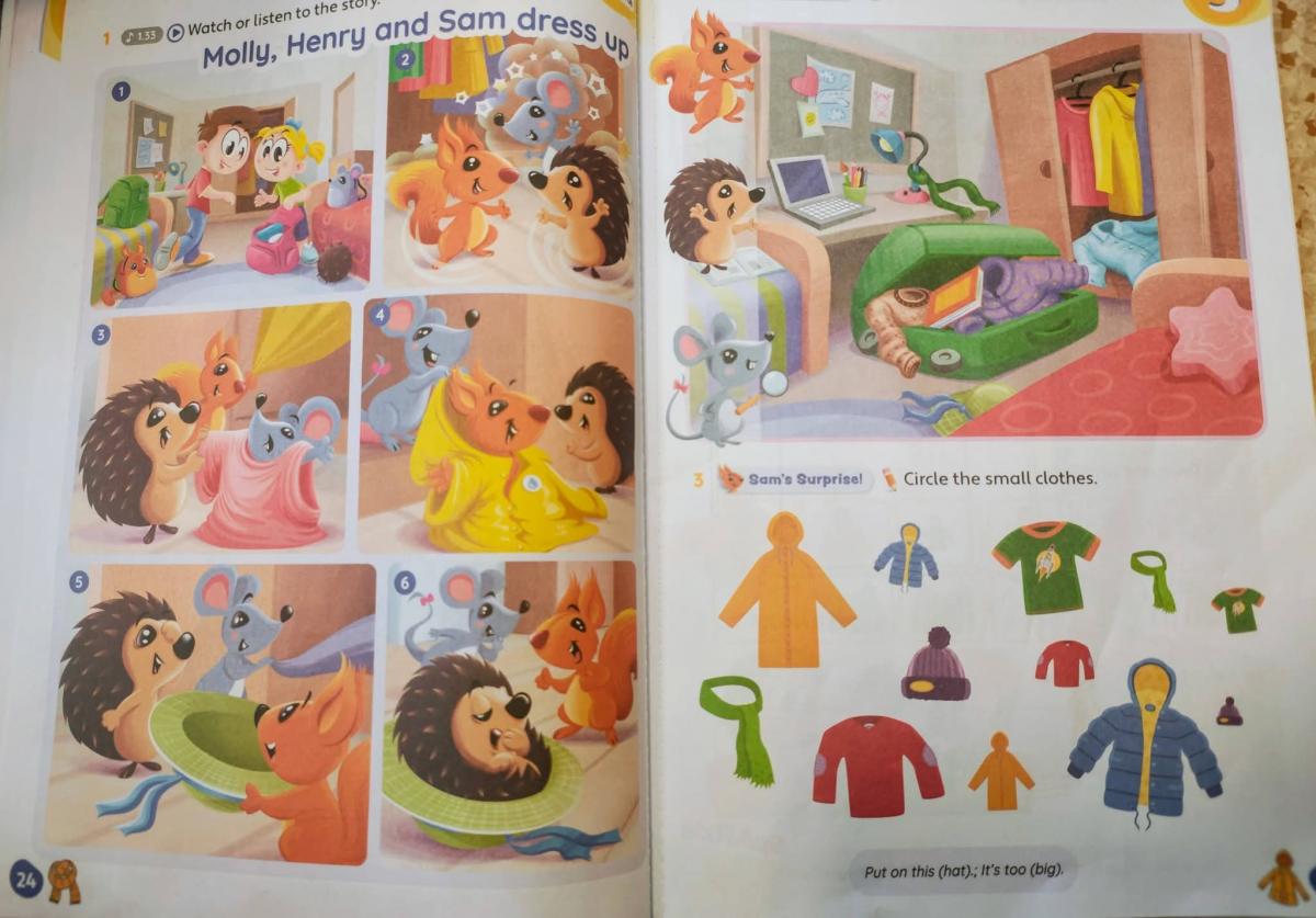 Podczas spotkań z panią Madzią są piosenki 🎵, ruch 🤸‍♀️, kolorowe obrazki  i różnorodne zabawy, a wszystko to z wykorzystaniem podstawowych słów i zwrotów w języku angielskim.