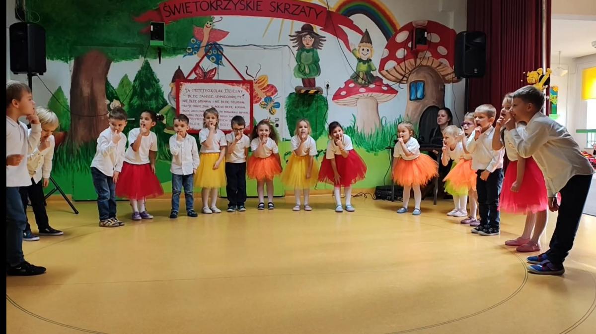 🎶 Uroczystość otworzyły dzieci z grupy „Misiaczki”, które z dumą zaśpiewały nasz przedszkolny hymn.