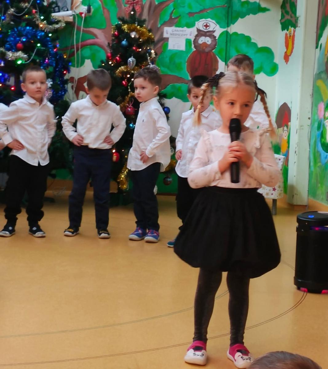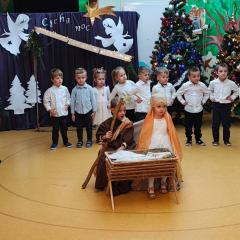 Wszystkie grupy przedszkolne zaprezentowały się wspaniale, wykonując po jednym utworze z repertuaru świątecznego, który wprowadził nas w magiczny, bożonarodzeniowy nastrój.