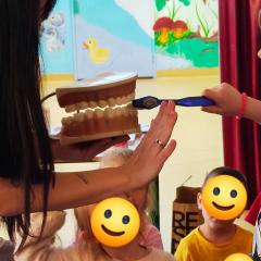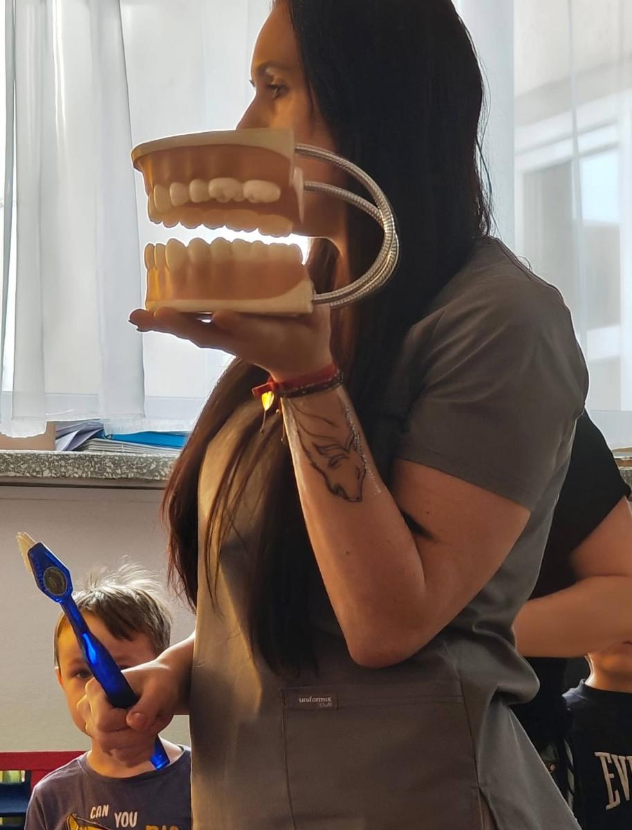Spotkanie miało formę zabawy – były zagadki, rozmowy oraz praktyczny pokaz poprawnego szczotkowania. Dzieci z dużym zaangażowaniem ćwiczyły właściwe ruchy i utrwalały nowe wiadomości.