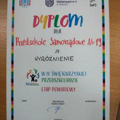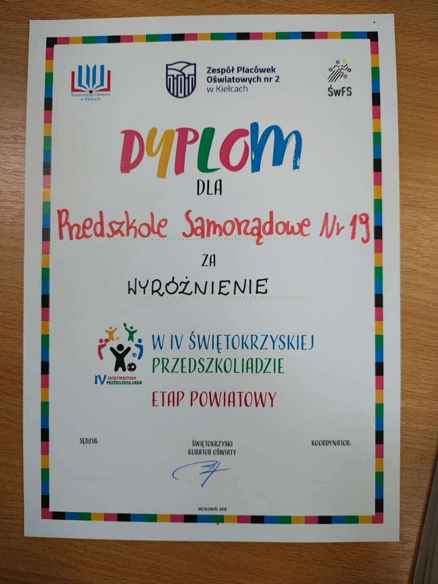 👏👏Wyróżnienie na IV Świętokrzyskiej Przedszkoliadzie- etap powiatowy👏👏